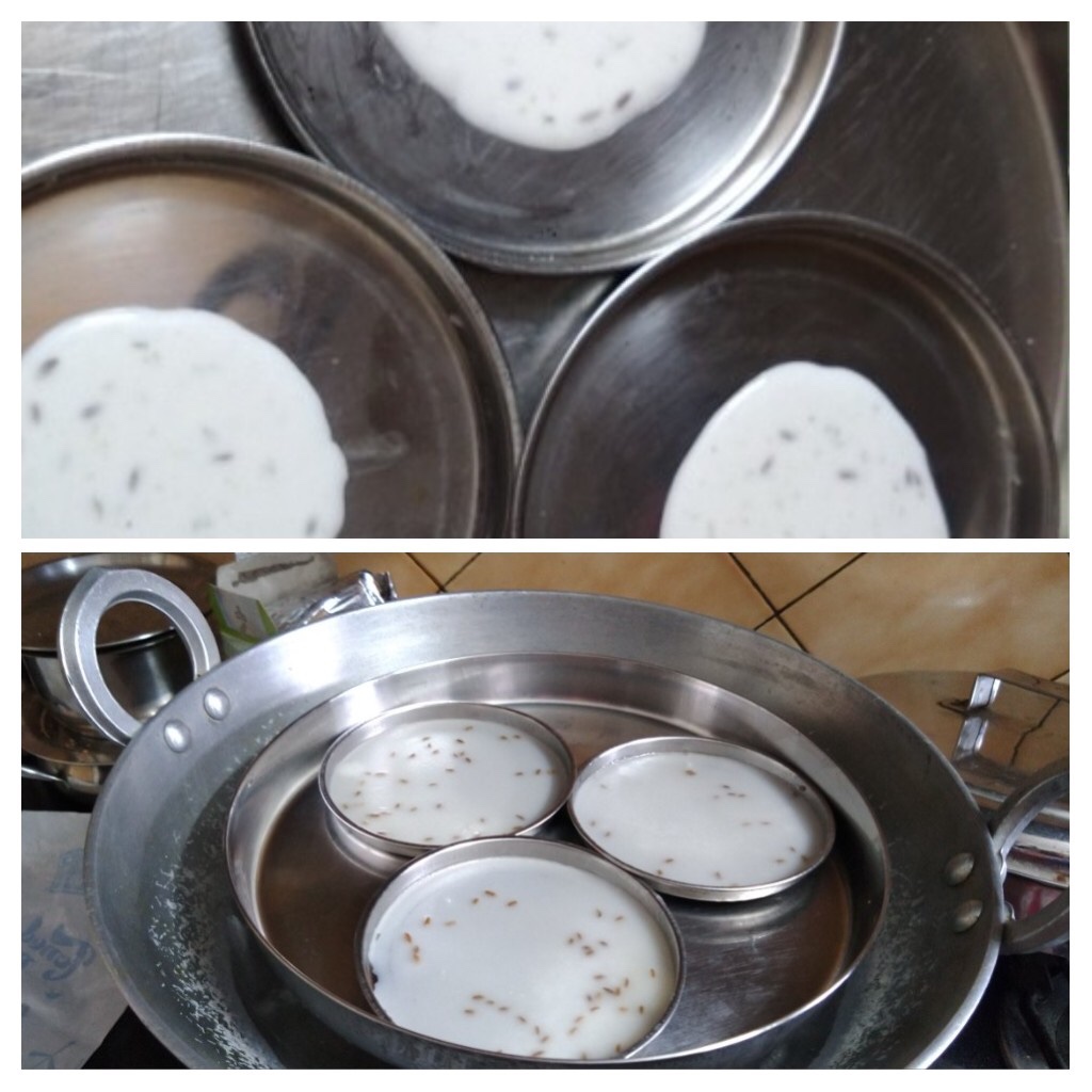 Pour a small quantity of the batter on a small greased steel plate and spread it well. Steam it for about 50-60 seconds.