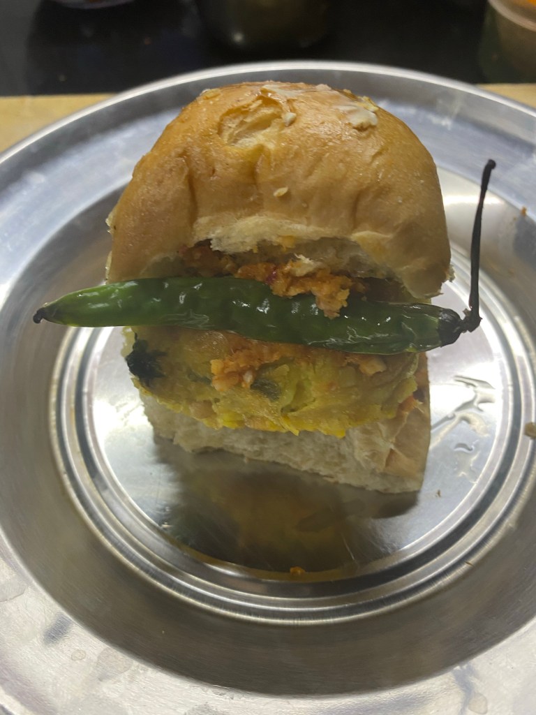 Take a green chilli fried in oil. keep in the Pav or can keep on the side of the Pav in a plate.