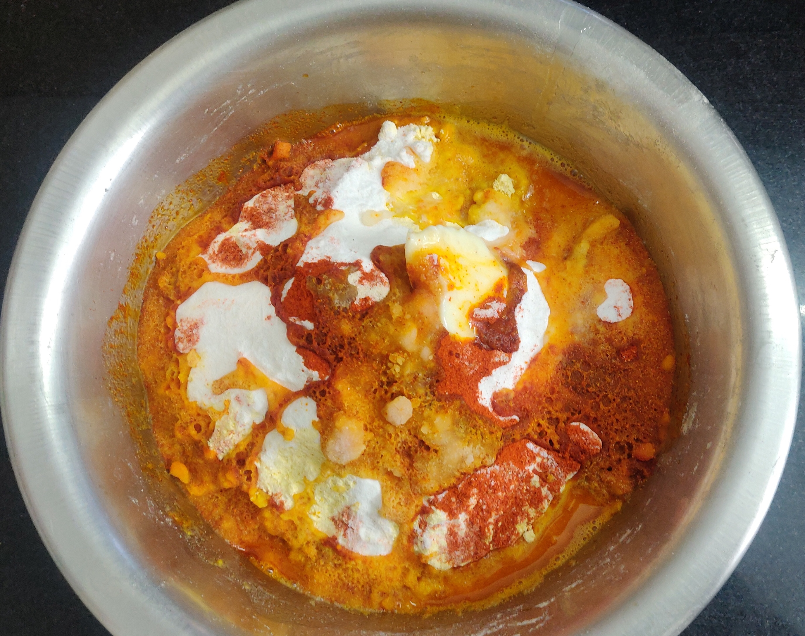 Hot oil( any refined like sunflower or corn oil) 2 ladles