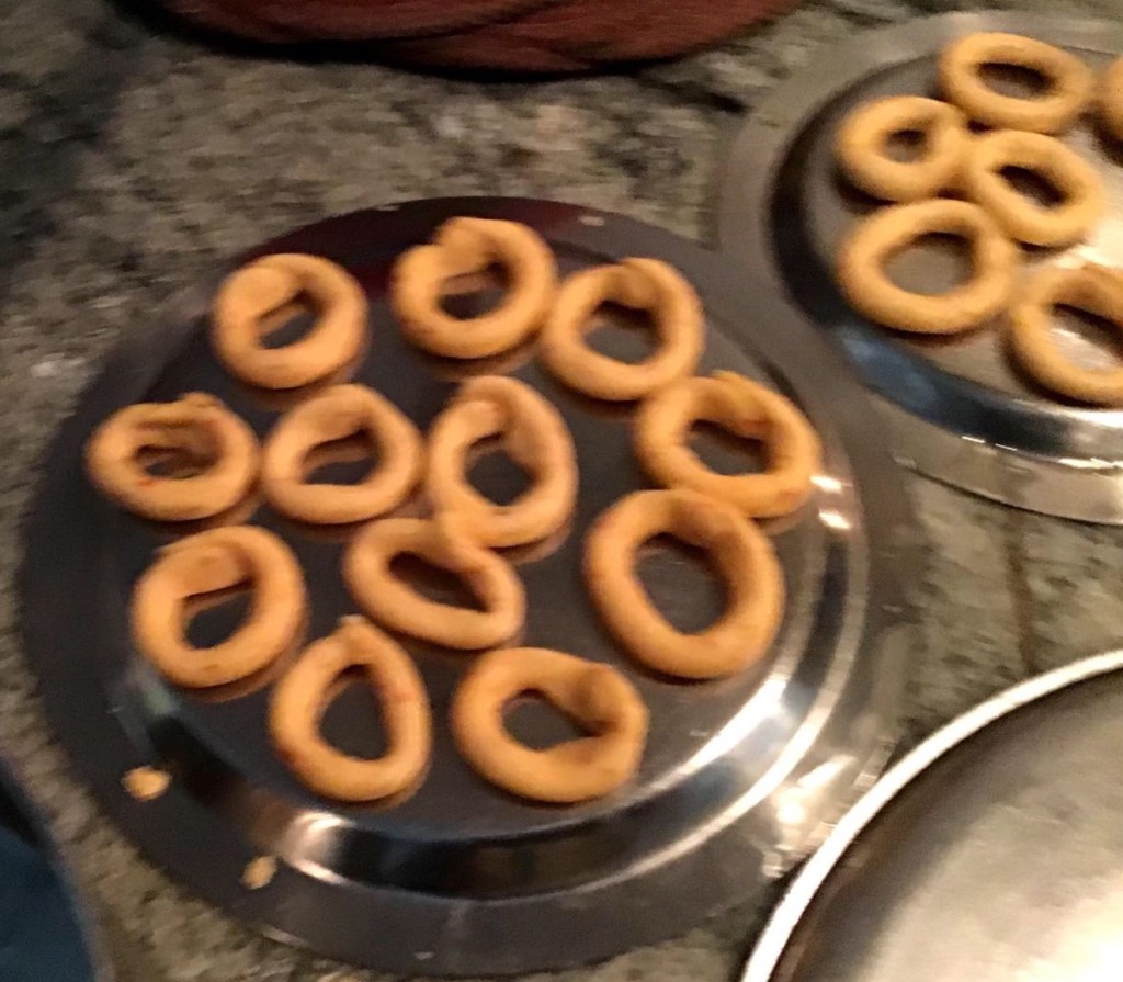 Pinch a small ball from the dough & roll it into rope shape on the back of a greased plate.