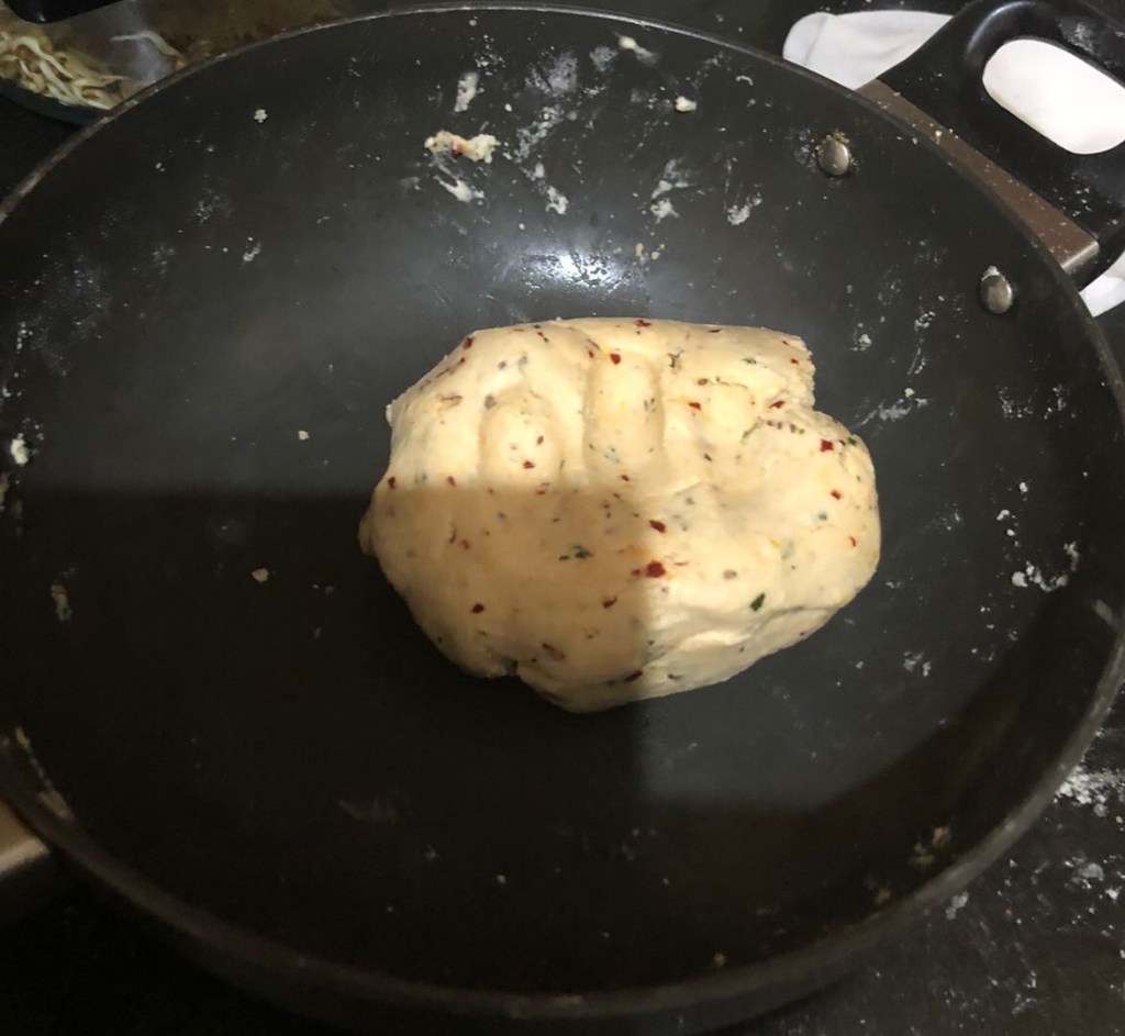 Heat the ghee till very hot & add to the above. Add 3/4 tsp of salt & mix very well.