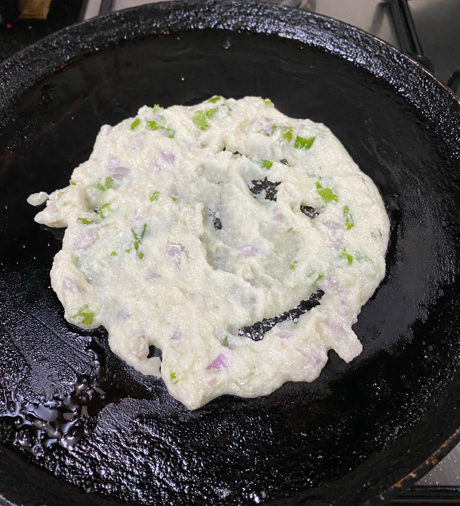 Mix everything well into a fine batter. If required add some water to get right pouring consistency as for dosa .