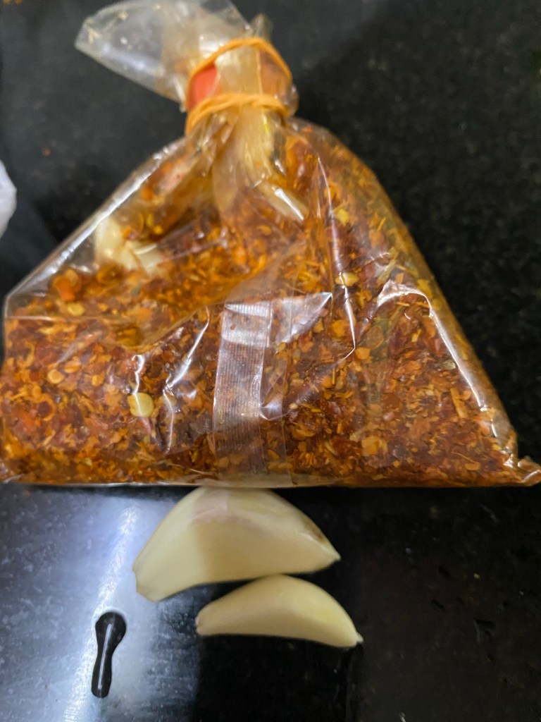 When butter has melted add in the chilli flakes and garlic. Add a little salt.