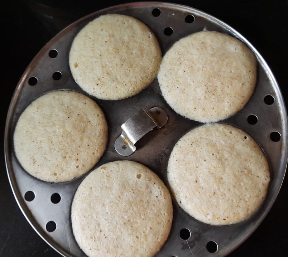Pour it in the greased idli vessel and steam for about 20 mins. Your super healthy and fluffy idlis are ready to eat.